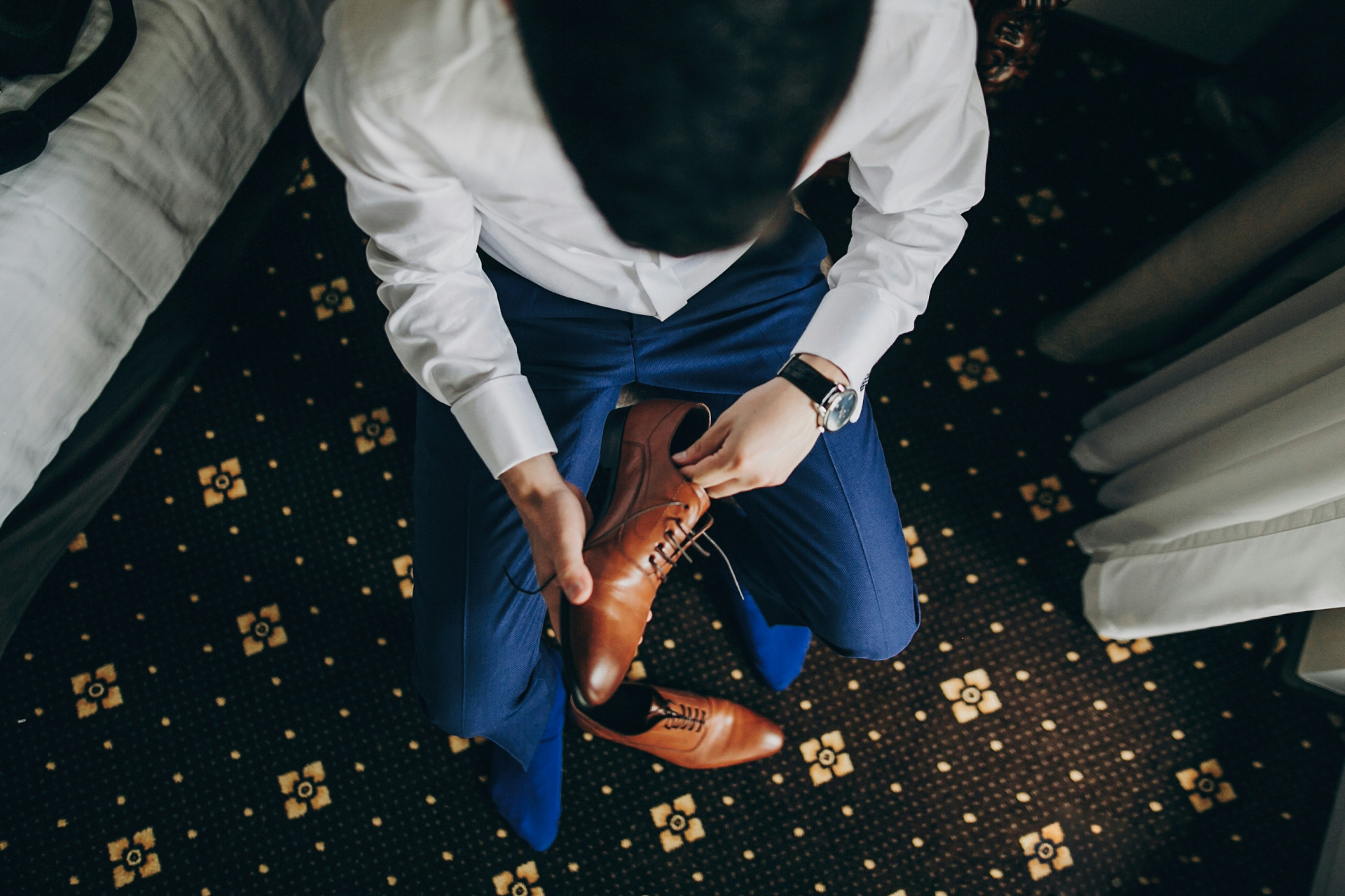 Et par velplejede sko sender et klart signal om sans for detaljer. Rens og puds dem regelmæssigt, og brug skoblokke, når de ikke er i brug, så de bevarer formen. Ruskind kræver en børste og imprægnering, mens lædersko har gavn af skocreme og voks.